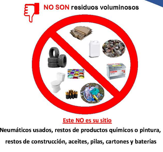 Allí podrán depositarse objetos voluminosos que se quieran desechar, por ejemplo: electrodomésticos (excepto frigoríficos), muebles y colchones.