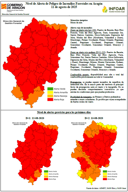El Ayuntamiento de Ansó informa de que hoy 11 de agosto y, previsiblemente, mañana día 12 de agosto, queda prohibido hacer fuego en espacios abiertos, áreas de descanso de la red de carreteras y en zonas recreativas y de acampada (incluidas las zonas habilitadas para ello).