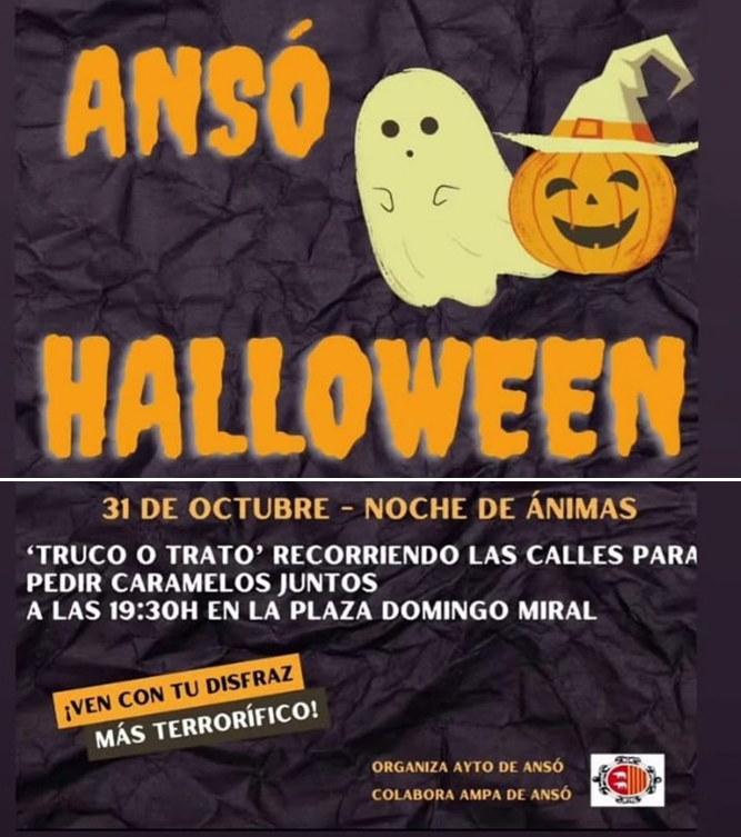 Viernes, 31 de octubre: Noche de Ánimas. Truco o trato por las calles de Ansó para pedir caramelos juntos. Salida a las 19:30h en la Plaza Domingo Mairal