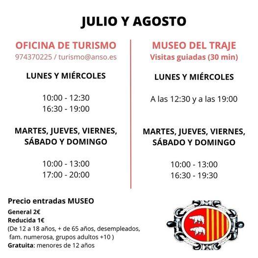Horarios para los meses de julio y agosto de 2024